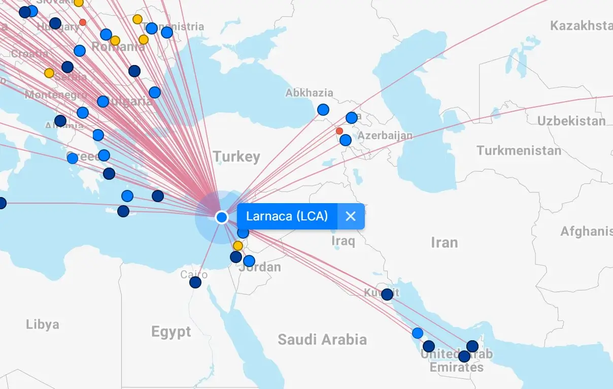 Larnaca Airport destination map